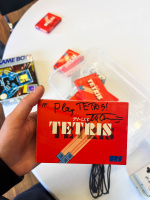 Skončil rozhovor - môžete si ho prečítať , Honzo s ním dohral Tetris, mimochodom vyhral :) Alexey bol na odchode. Organizátor povedal, že sa ponáhľajú, má ďaľší naplánovaný program, maximálne ešte minútu, no že je to Alexeyov osobný čas, takže len ak on bude chcieť sa ešte zdržať. Rýchlo som k nemu pristúpil a chcel si nechať podpísať Gameboy, na ktorom sa hral, ale ten mi podpísať nechcel :D Tak mi podpísal aspoň Famicom Tetris. Hovoril mi, že má plný email správ od zberateľov, ktorí chcú aby im niečo podpísal, ale ignoruje to :D