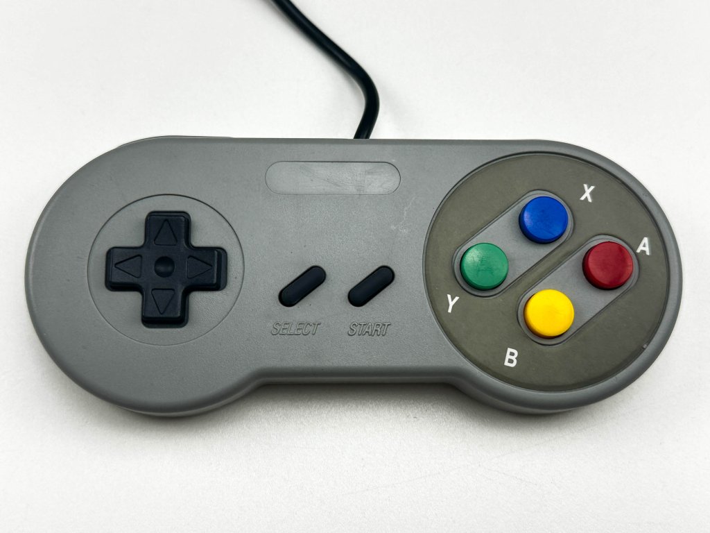 Ovládač pre hernú konzolu Nintendo SNES s 12 mesačnou zárukou. Ovládač je otestovaný, kompletne vyčistený, plne funkčný a bez poškodenia :)